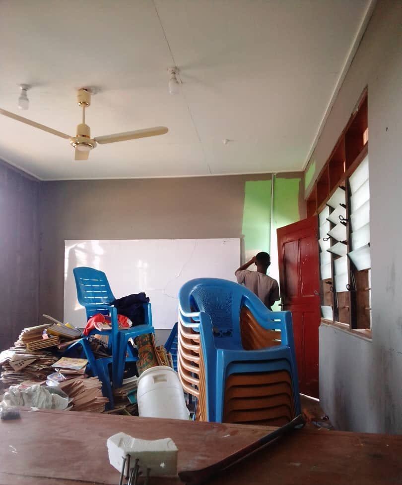 As you may know, every year the Middle Years Programme requires MYP3 students (Grade 8) to come up with ideas for a community project in groups. For our project we are refurbishing a library at St. John’s Academy at Ashaiman, Lebanon. During our time of being at home and at school, we were able to get some donations from our parents in order to begin the plans for our project. We were able to get a total of nine thousand Ghana cedis from our parents (9,000GH₵). We also got in touch with a carpenter and an electrician who have now covered the roof which was exposed with wood and wires and as well have re-wired the whole room with the money we got. We also were able to get a painter who painted the walls and the ceilings.